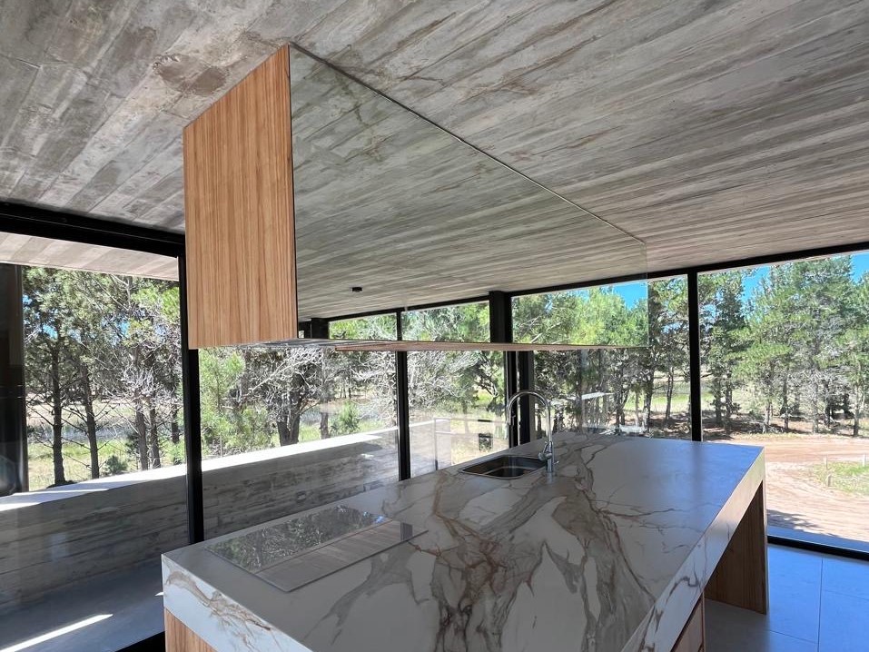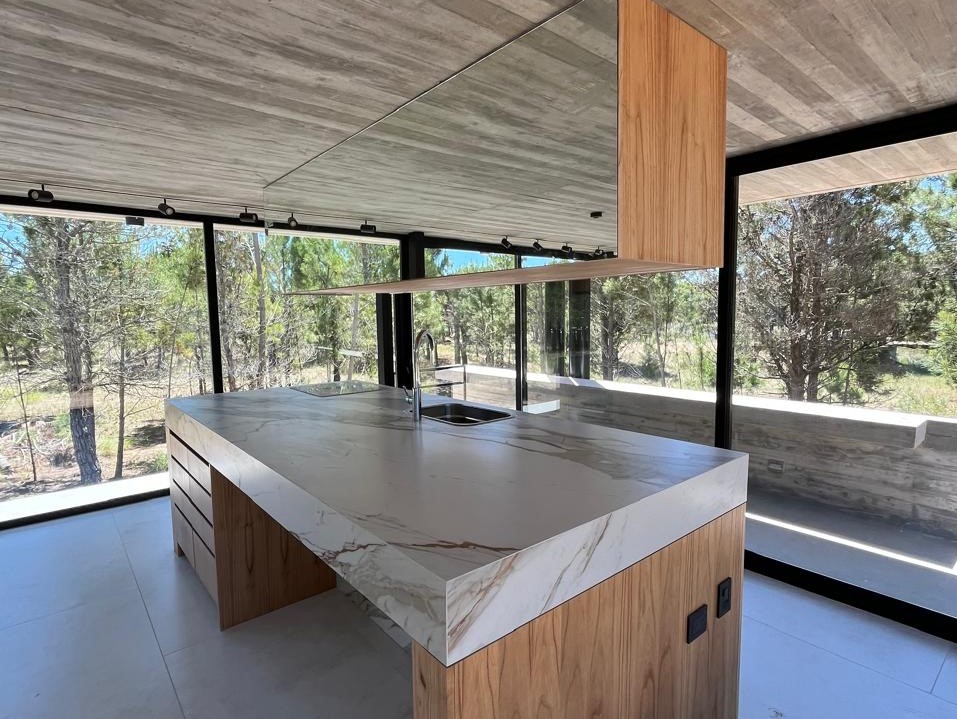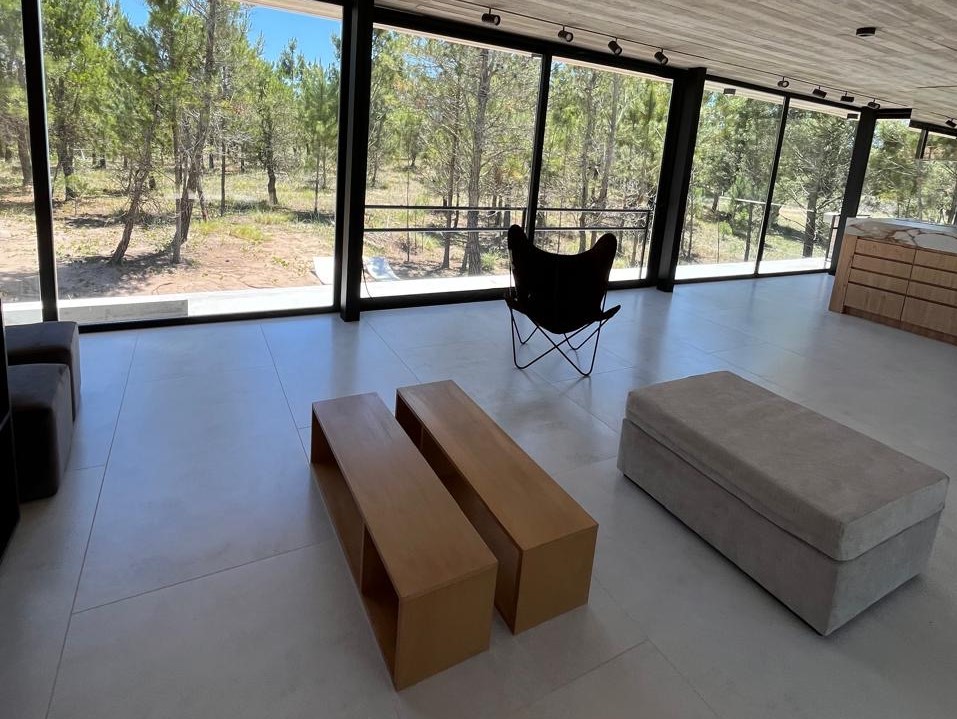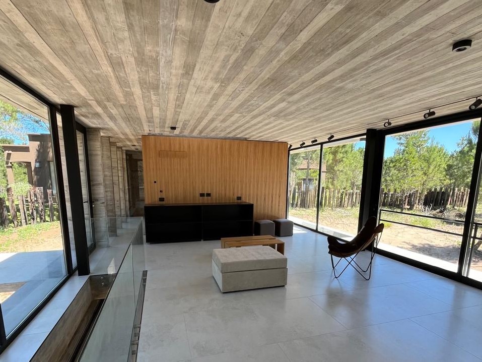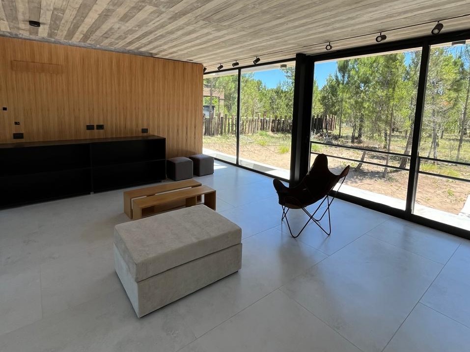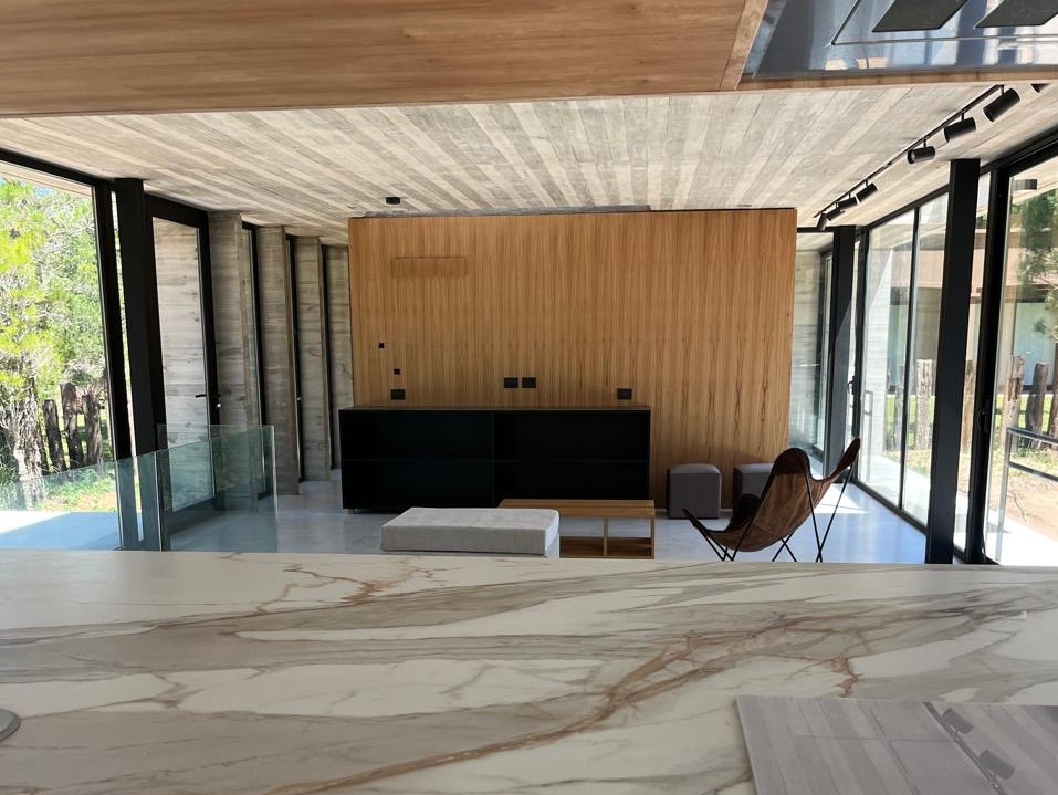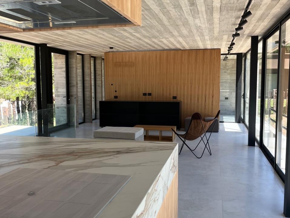 Con una superficie cubierta de 150 m2 y una superficie semicubierta de 81 m2, esta casa está construida con materiales de alta calidad como hormigón visto, carpinterías DVH y revestimientos interiores de madera. Además, cuenta con calefacción por piso radiante, preinstalación para aire acondicionado, artefactos eléctricos y mobiliarios interiores.
