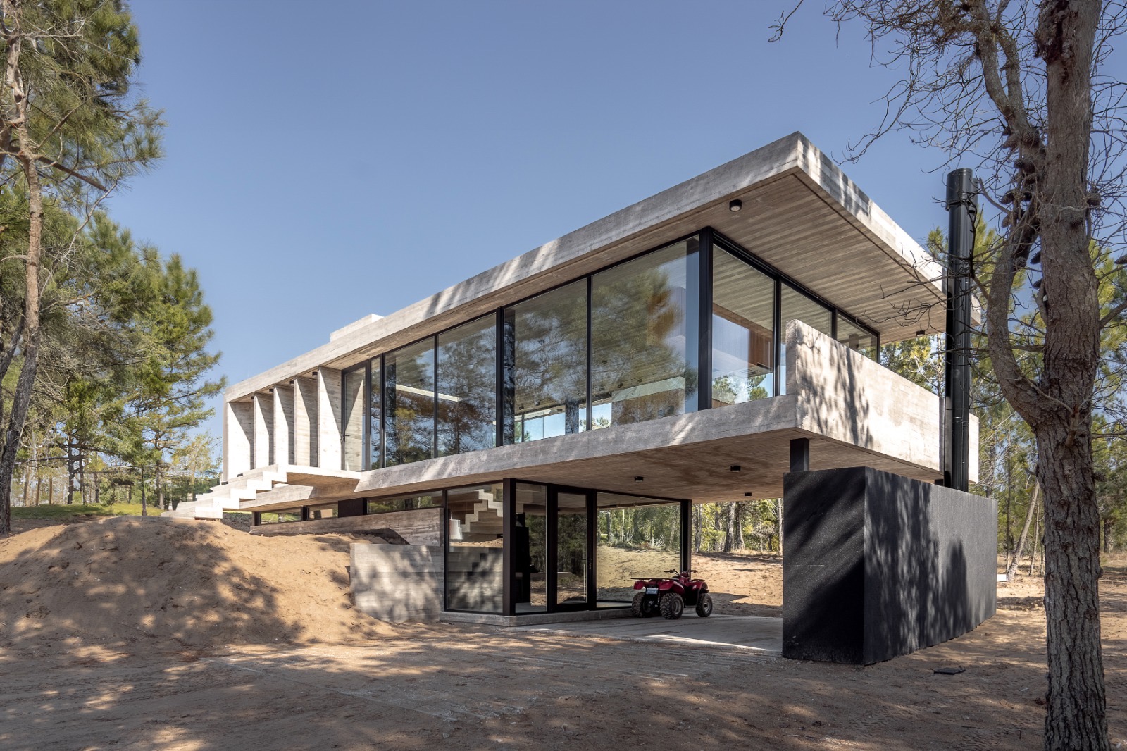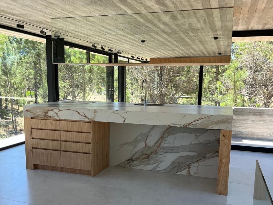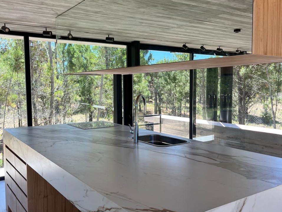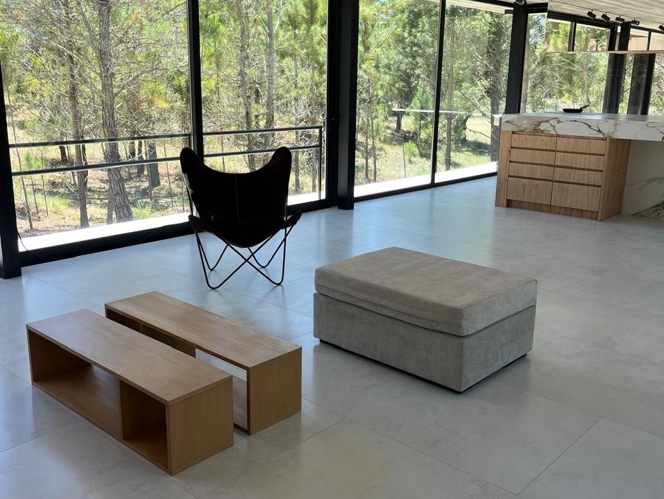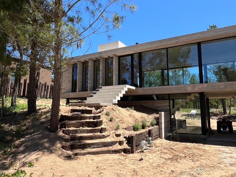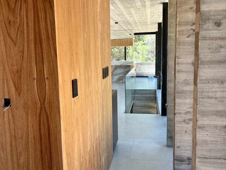Con una superficie cubierta de 150 m2 y una superficie semicubierta de 81 m2, esta casa está construida con materiales de alta calidad como hormigón visto, carpinterías DVH y revestimientos interiores de madera. Además, cuenta con calefacción por piso radiante, preinstalación para aire acondicionado, artefactos eléctricos y mobiliarios interiores.